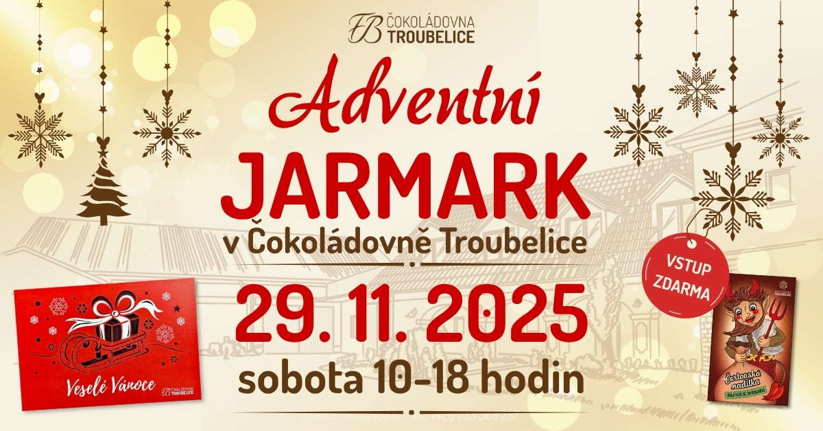 Srdečně vás zveme na adventní jarmark v Troubelické čokoládovně v sobotu 29. 11. 2025 od 10 do 18 hodin! 🎄